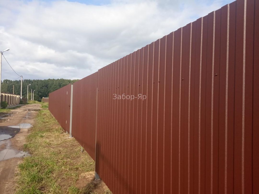 Забор из профлиста – это хороший бюджетный вариант, когда нет каких-то определенных эстетических требований. За счет своих свойств он имеет долгий срок службы, разнообразный внешний вид, и не требует особого ухода.
